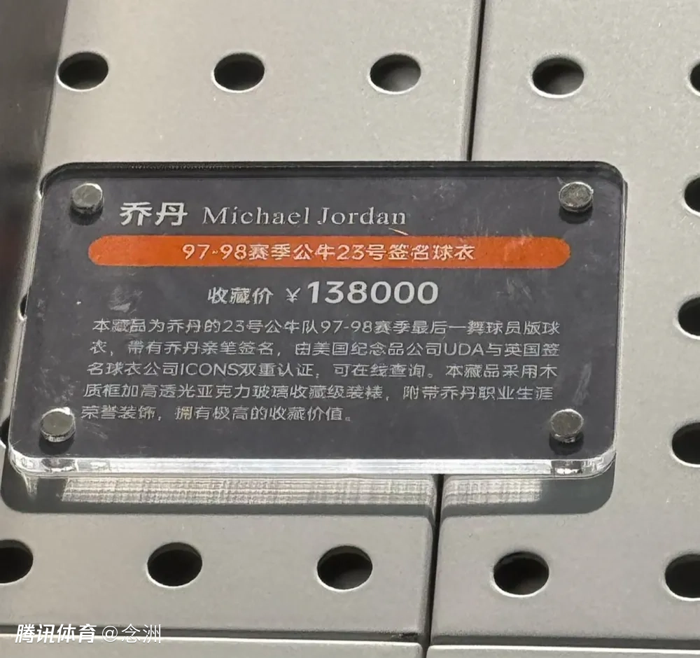 篮球球衣当然也少不了,包括姚明、库里、字母哥、韦德、弗拉格、塔图姆、文班亚马,等等。其中最贵的当属乔丹97-98赛季公牛23号签名球衣,售价138000元!售价最低的是艾弗森1996-97赛季76人3号亲签球衣,价格为6300元。