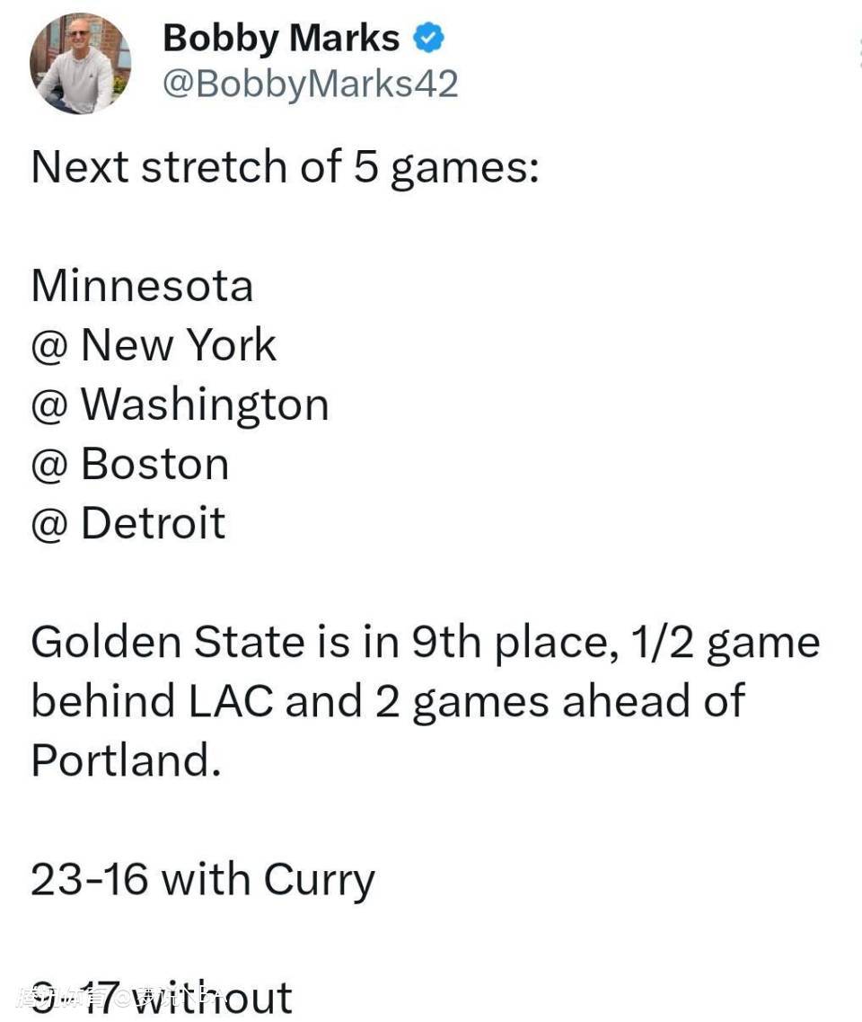 但库里本人也称这次右膝伤势“难以预料”。自1月25日在明尼阿波利斯一次个人训练中首次出现伤势后,他已经遭遇过反复。他原本希望在全明星赛后立刻复出,但因膝盖恢复未达预期,不得不降低训练强度。本赛季库里出战时勇士战绩为23胜16负,而缺少这位头号得分手时,球队仅9胜17负。