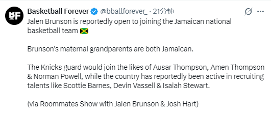 即便库里等球星也在竞争2028奥运会名额,但只要布伦森保持这一水准,他仍有很大机会入选美国队。不过,加盟牙买加男篮同样充满看点。