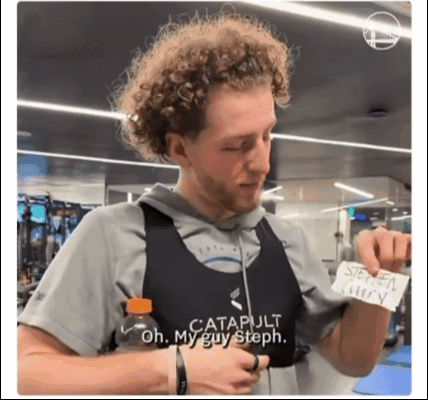 多名勇士球员都参加了这个活动,而在轮到库明加时,他抽到了斯宾塞,给他的礼物为:“更多的上场时间”,库明加说完拍了两下抽奖箱离去。