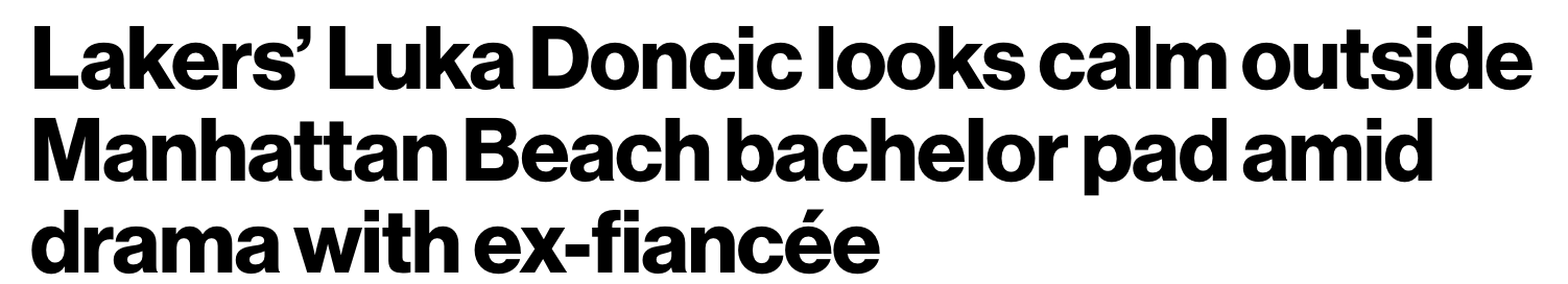 近期,东契奇被拍到现身曼哈顿海滩阳光社区单身公寓的画面,他身着湖人黑色运动套装,戴着深色墨镜,手提黑色行李包。在私人保镖、首席品牌官兼商务经理拉拉-贝斯-西格的陪同下,东契奇神态平静,甚至可以说是从容淡然,全然不顾与前未婚妻安娜玛丽亚-戈尔泰斯之间的情感纠葛。