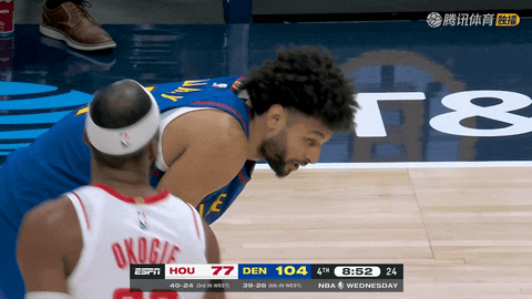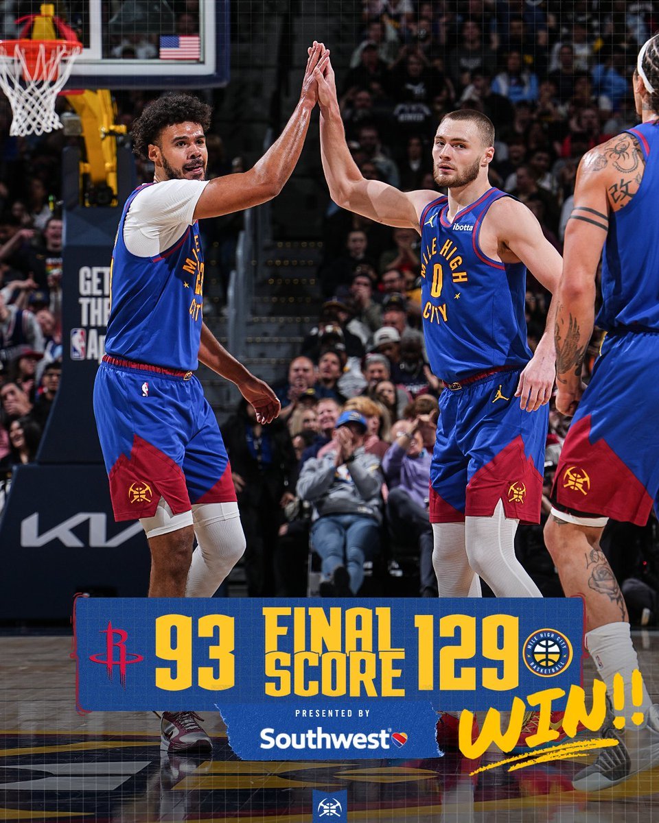 终场哨响,掘金129-93大胜火箭。