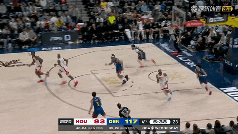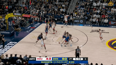 次节回来还剩11分24秒至还剩59秒时,火箭不断冲击内线,申京、阿门和卡佩拉多次上篮、扣篮,单节内线拿到20分,将分差从6分追至5分。节末阶段掘金连续三次抢断迫使火箭连连失误,从落后1分再度反超,半场掘金53-47领先。