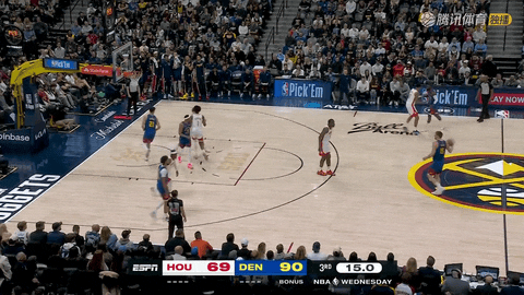 第一节还剩8分09秒至还剩5分钟时,掘金在3分09秒内由约翰逊、穆雷和哈达威连续命中三记三分,从落后3分反超至领先5分,首节结束掘金24-20占先。