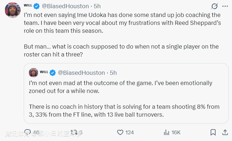 休媒:火箭球员在比赛中毫无乐趣可言,这才是他们面临的主要问题之一。