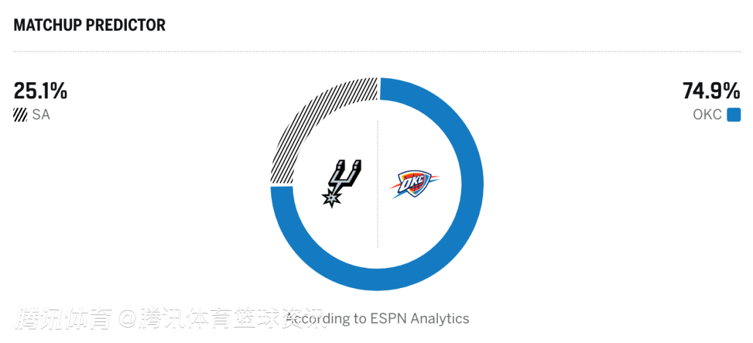 马刺25.1%,雷霆74.9%