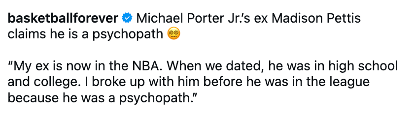 北京时间3月13日,据美媒BF报道,篮网球员小波特前女友麦迪逊-佩蒂斯声称小波特是个变态狂。