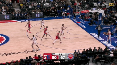 半场前压哨回合,里德在第二节压哨时接到邓肯-罗宾逊助攻完成反手上篮,将比分定格在76人60:69活塞。