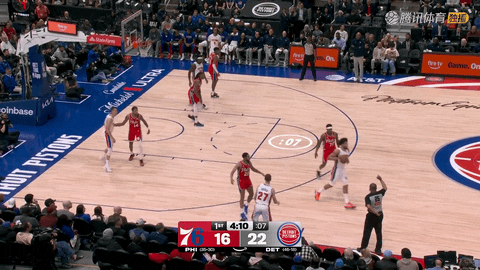 第二节还剩2分23秒时,76人开始在防守端施压,连续迫使坎宁安和里德丢球,并制造一次团队失误,在1分10秒内把比分从54:64追至58:64,将分差缩小到6分。