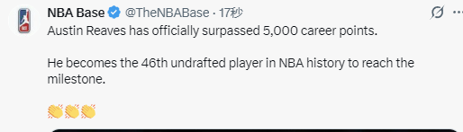 本场比赛之前,里夫斯职业生涯总得分已经达到4976分,第四节比赛结束前7分50秒,里夫斯利用跳投拿到个人本场第24分,生涯总得分达到5000分。