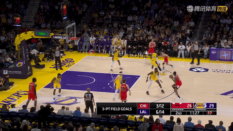 次节回来,湖人还保持手感,还剩11分34秒时里夫斯再中三分,但还剩11分20秒时河村勇辉三分命中开启公牛反击,从第二节还剩11分20秒时的29-29到还剩6分12秒时的45-39,河村勇辉、布泽利斯和迪林汉姆先后投进三分,公牛完成反超。
