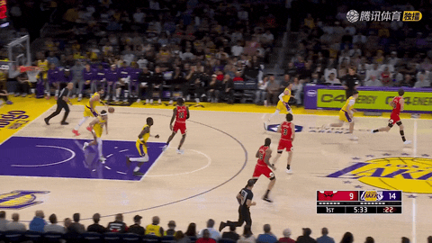 随后八村垒后仰投篮、艾顿空切上篮连拿4分,公牛在首节还剩9分53秒时由布泽利斯突破上篮首次得分。此后湖人外线火力全开,东契奇在首节还剩5分25秒和4分53秒先后命中三分,八村垒也投进远投,一度拉开比分。