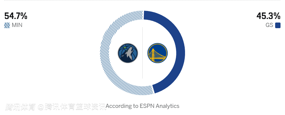 森林狼54.7%,勇士45.3%