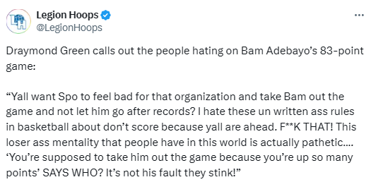 北京时间3月14日,勇士球星追梦在播客节目中回击了那些批评阿德巴约单场狂砍83分的言论。