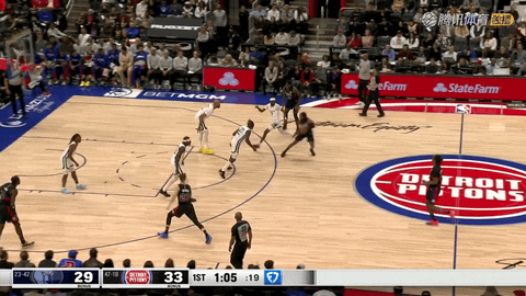 首节还剩9分11秒至还剩6分18秒时,活塞在不到3分钟内由邓肯-罗宾逊、格林和萨瑟连续命中三记三分,将比分从7-6反超到13-16。