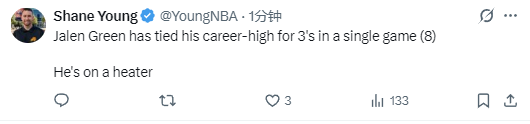 根据数据统计显示,单场投中8记三分球,追平了杰伦-格林职业生涯单场三分球命中数纪录。同时,他也是太阳队历史上单场能投中至少8个三分球的后卫中最年轻的。