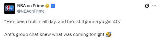 在谈到赛前一度出战成疑,为何上场状态却如此出色时,爱德华兹说道:“靠的是韧性。有时候你早上醒来,就预感到今晚自己会爆发。今天就是这样吗?没错,肯定是。我和我的兄弟们在小群里一直在互相发消息,我跟他们说我要放下手机专心备战。最后一个哥们说,‘他放了一整天狠话,到头来还是得靠自己去砍下40+。’”