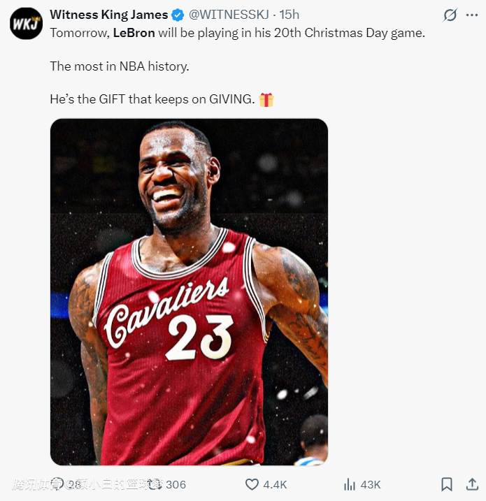 实际上只要勒布朗站在年终大战的舞台他就会创造两项历史首人纪录,那就是生涯第20场年终大战历史第一。