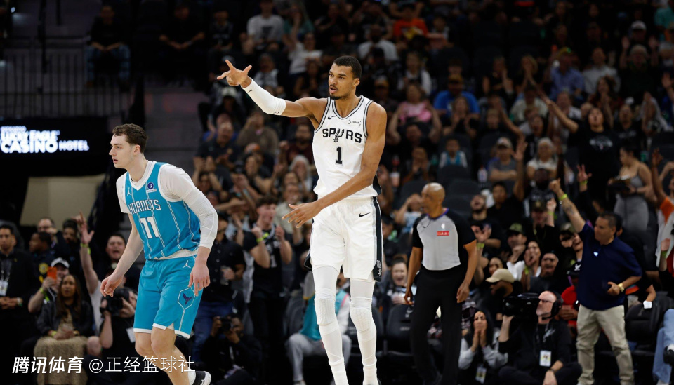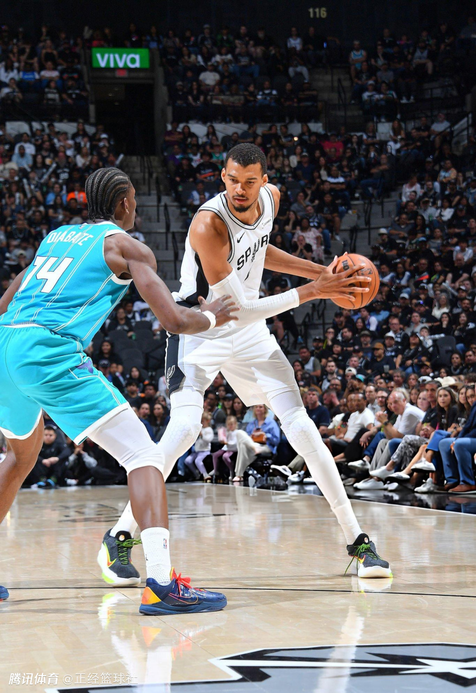 进入第三节比赛之后,文班亚马减少了内线强打,选择更多中远投出手,命中本场个人第四记三分,此外两次中投也都稳稳命中,还多次为科内特送出助攻。末节比赛,文班亚马上场后先是上篮得手然后完成空接,帮助球队再度将分差拉开到两位数。终场前一分半钟,文班亚马先是送给队友空接,然后命中三分,彻底杀死了比赛悬念。