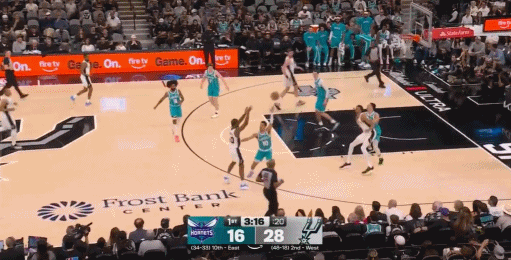 比赛刚刚开始,文班亚马便在右侧45度干拔三分出手命中,随后他在几乎同一位置再次命中三分,与此同时他的两次强攻也都轻松得手,单节拿到11分3篮板2封盖。次节比赛中,文班亚马和格威陷入缠斗,其中一球文班亚马单打后者,轻松转身完成左手暴扣,此外他还有一次三分和上篮命中,单节再次拿到7分5篮板。