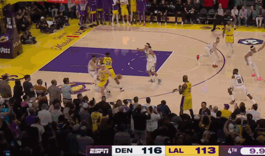 本场比赛,掘金一方,戈登27分5篮板,约基奇24分16篮板14助攻,哈达威20分,穆雷手感冰凉,全场14中1,只得到5分。湖人一方,里夫斯32分7篮板6助攻,东契奇30分11篮板13助攻3盖帽,斯马特21分5抢断,詹姆斯17分6篮板5助攻2抢断。