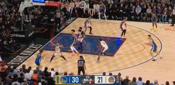 末节,阿尔瓦拉多上篮得分,唐斯中投得分。波斯特连得5分,桑托斯三分命中。克拉克森打成2+1,米罗补扣,克拉克森抛投命中,尼克斯领先7分。波斯特三分命中,桑托斯补篮得分。阿奴诺比、布伦森、桑托斯连续罚球得分,沙梅特三分命中。小佩顿、桑托斯上篮也中,勇士只落后1分。布伦森中投命中,波杰姆斯基上篮得分,沙梅特两罚两中,尼克斯领先3分,波杰姆斯基上篮得分。阿奴诺比两罚两中,波斯特失误,尼克斯险胜勇士。
