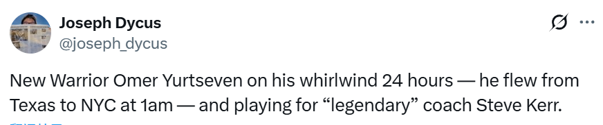 尤尔特塞文:凌晨1点钟才赶到纽约,和球队会合。