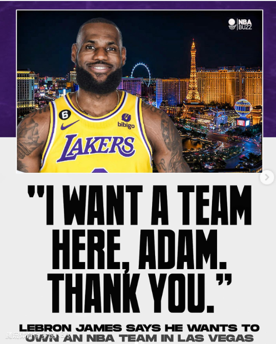 早在2022年,这位湖人超级巨星就曾公开盛赞拉斯维加斯球迷,并直接呼吁总裁萧华把NBA球队带到拉斯维加斯。“这里有全世界最棒的球迷。我非常希望未来能在这里拥有一支球队。我知道亚当现在可能在阿布扎比,但他肯定会看到球员的每一段采访。所以,亚当,我想要这里有一支NBA球队。谢谢。”