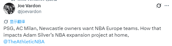 北京时间3月17日,据TA报道,NBA计划推出欧洲联赛,有意向的投资者需在2026年4月1日前提交非约束性竞标申请,以获取12个欧洲城市球队特许经营权。