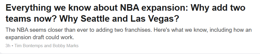 NBA扩军预计进入倒计时,关于这项重要的运作,球迷也有不少疑问。ESPN撰文详细解读,一文让你读懂NBA扩军的方方面面,具体如下——