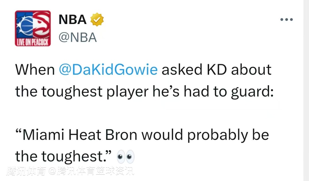 杜兰特表示:“我会选热火时期的詹姆斯。我不想只单说一个人,因为有很多伟大的球员都给我制造过麻烦。当时他的中距离投篮非常精准,而且运动能力正处于巅峰状态。所以,我认为最难防的就是他。”