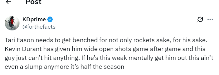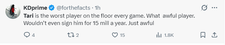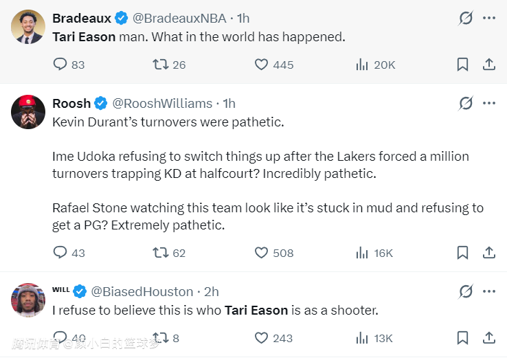 KD球迷:伊森是场上表现最差的球员,他是一个很糟糕的选手,就算给他每年1500万都不值,他太差劲了。