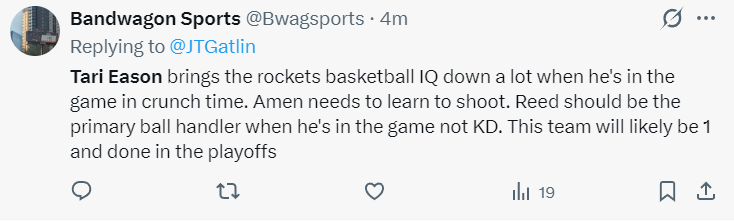 火箭博主:伊森在场一直给火箭负面的影响,他的先发席位应该让给谢泼德。