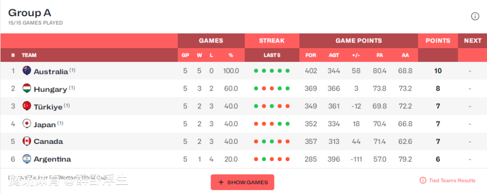 日本女篮凭借险胜加拿大女篮拿到首胜,也是保留晋级希望。日本女篮随后凭借狂胜阿根廷女篮44分,成功达到2胜3负,且净胜分提升到+44。
