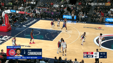 随后坎宁安在第一节还剩9分42秒和8分27秒时先后空切扣篮与突破扣篮命中,活塞完成首节连续三次扣篮。两队随后比分交替上升,多次打平,第一节还剩21秒时霍兰二世突破上篮命中,首节结束双方32:32。