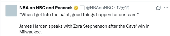 北京时间3月18日,NBA常规赛继续进行,骑士队123-116击败雄鹿队。骑士队球员哈登此役得到27分5篮板6 助攻2抢断,赛后他在场边接受媒体采访。