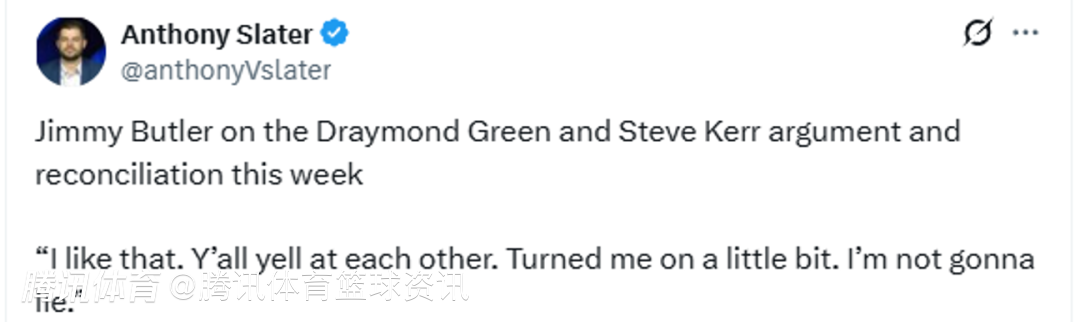 巴特勒:这就是比赛的一部分啊。大家并肩这么久,难免有争论,不可能一直风平浪静,很正常。他俩都是好胜心极强的狠角色,一起拿过冠军还想继续赢,这点事心里都门儿清。你要是看我当时的反应,我就淡定看着,心里想“意料之中”,翻篇儿就完了。