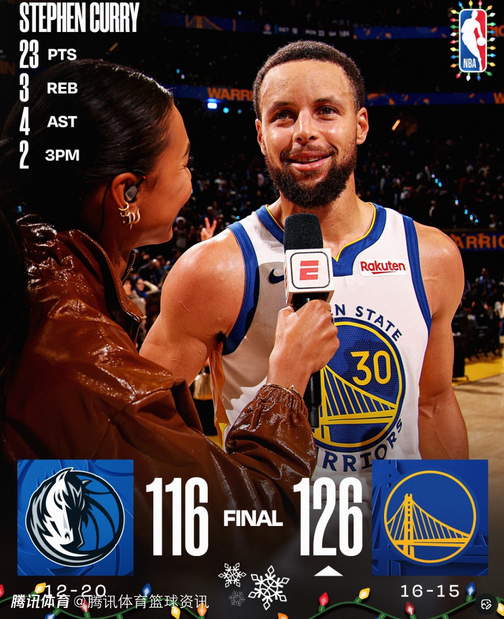 北京时间12月26日,NBA圣诞大战,勇士以126-116击败独行侠,此役库里拿到23分3篮板4助攻,赛后他接受了媒体的采访。