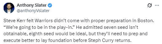 科尔认为,在库里等伤员回归前,勇士队必须更好备战、执行战术。他说道:“我们必须做好准备,等伤员们回来。等他们归队,我们就能打出破坏力,打出连胜。我们可以修正比赛计划里的错误,必须养成更好的习惯,卡位、保护好球、提高转换进攻效率,诸如此类的事情。球员们打得很努力,我为他们感到骄傲。只是今晚投篮没进而已。但我最看重的是过程,而我认为今晚有些环节的过程是不合格的,我们会去讨论这一点。”