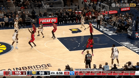 第二节还剩10分50秒时开拓者仅以41比38领先步行者,随后到第二节结束前38秒,他们在约10分钟内打出38比25的攻势,将比分拉开到79比60,将优势从3分直接扩大到19分,其间亨德森在第二节还剩5分48秒命中三分,威廉姆斯三世在还剩4分30秒时完成空接扣篮,阿夫迪亚在还剩38秒时再添两分完成上半场的巨大领先。