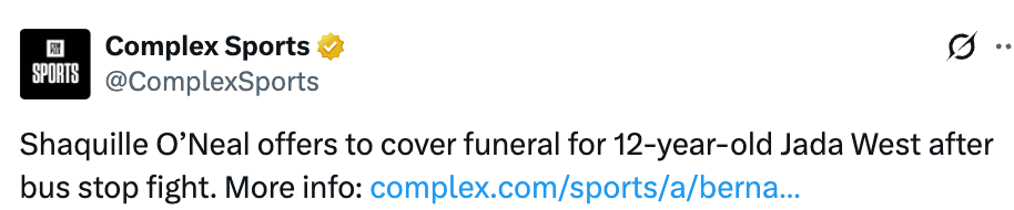 奥尼尔在一份声明中说:“我在社媒上看到这个故事的那一刻,就深受触动。作为一名父亲,我对贾达的家人深表同情。没有任何父母应该承受白发人送黑发人的痛苦,如果我能做些什么来减轻他们哪怕一点点负担,那都是我应该做的。”他还表示,在这个家庭悲痛之际,整个社区都应带着关爱、支持与同情团结在一起。