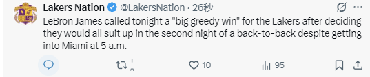 在谈到外界有报道称“没有詹姆斯湖人会更好”的话题时,詹姆斯怒怼媒体:“这种话很有噱头,更容易博眼球、造话题,也更适合做新闻剪辑和播客素材。比如有人说‘没有他,勒布朗的球队反而更好’,很多人就会想去看看到底怎么回事。我懂这种套路,但他们说得完全是错的。”