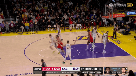 北京时间12月26日,NBA常规赛,湖人主场以96-119不敌火箭,吞下大比分失利。火箭首发五人全部得分上双,团队火力全面开花。比赛还剩3分36秒时,东契奇在一次防守中先犯规又被吹技术犯规,杜兰特技术罚球命中将比分改写为107-89,在火箭本就占据大幅领先的情况下,这一回合几乎浇灭了湖人的最后反扑希望,随后比赛进入练兵时间。