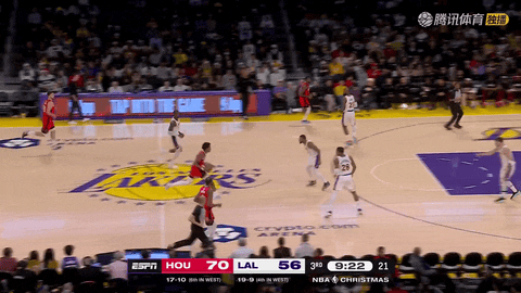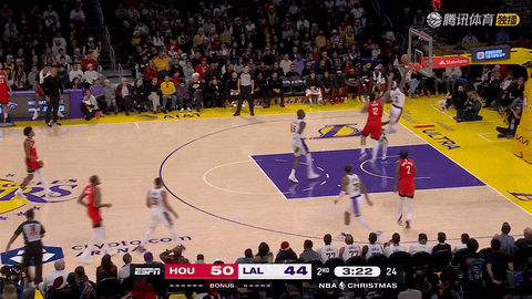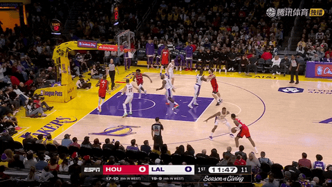 第四节还剩7分10秒时,阿门与杜兰特完成空中接力扣篮,火箭将比分改写为102:80。还剩5分07秒时,艾顿接东契奇助攻完成空中接力上篮,把比分追到104:89,他也由此成为湖人本场第五位得分上双的球员,此时东契奇得到25分,詹姆斯18分,里夫斯12分,范德比尔特11分。