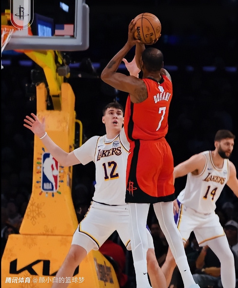 北京时间12月26日,NBA年终大战,火箭以119-96击败湖人结束二连败。这场比赛芬尼-史密斯复出了,芬尼-史密斯对杜兰特的减压是显而易见的,杜兰特防守端消耗体能降低,他的进攻专注度就一直在,除了进攻效率高外他的助攻效率也很高。