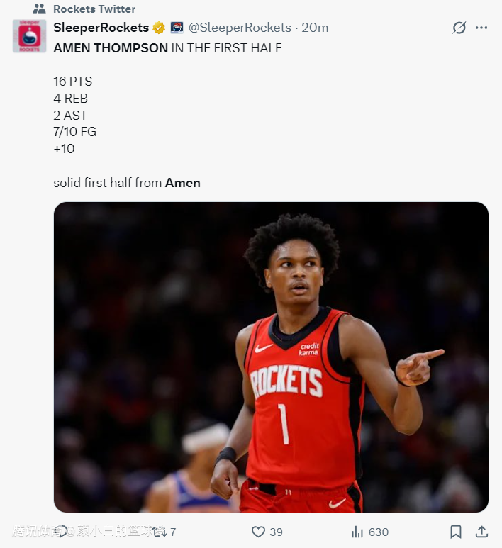 次节湖人一度将分差缩小到2分,还是阿门挺身而出连续的突破撕裂湖人防线。阿门的冲击力实在是太强了湖人这边是真的防不了,半场阿门18分钟,11中7,拿到16分5篮板2助攻1抢断,他跟杜兰特的得分都是火箭最高的。