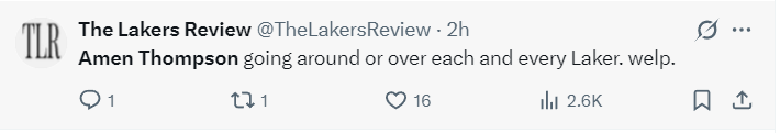 湖人媒体The Lakers Review被阿门打服了,他写道:好吧,阿门-汤普森击败了每一个湖人球员。