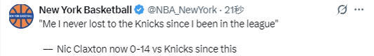 北京时间3月21日,NBA常规赛继续进行,篮网队92-93不敌尼克斯队。赛后,尼克斯队媒体New York Basketball发文,嘲讽了篮网队中锋克拉克斯顿。