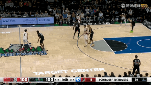 进入最后2分钟,第四节还剩2分48秒时,兰德尔抛投加罚命中,将比分追成100-100。还剩1分40秒时,格兰特接阿夫迪亚分球命中三分,开拓者以103-100领先。