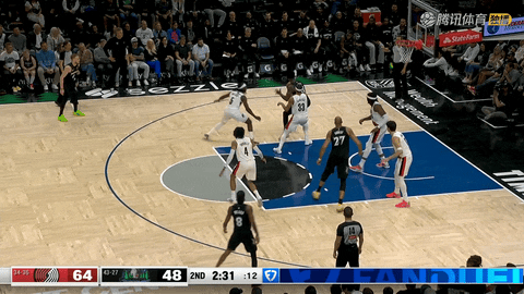 第二节还剩11分13秒时开拓者仅以33-30领先,他们在之后约9分钟里打出33-20攻势:格兰特在第二节还剩8分58秒时投进三分,克林根完成多次空中接力扣篮,阿夫迪亚在第二节还剩2分20秒时中投命中,最终把比分从33-30拉开到66-48,为上半场建立起18分的巨大优势。